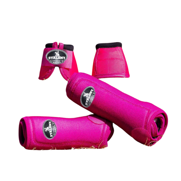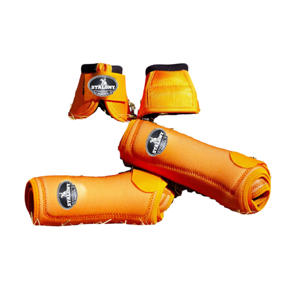 o conjunto splint e cloche stalony oferece proteção completa para o cavalo. o splint protege os membros, sendo confeccionado em neoprene com almofadas internas que absorvem impactos e evitam atritos. o cloche possui ajuste anatômico, revestimento externo em nylon e forro em neoprene, garantindo conforto sem comprometer a mobilidade. resistente e funcional, o conjunto une segurança, bem-estar e desempenho em cada montaria.
