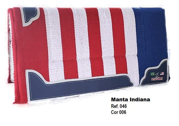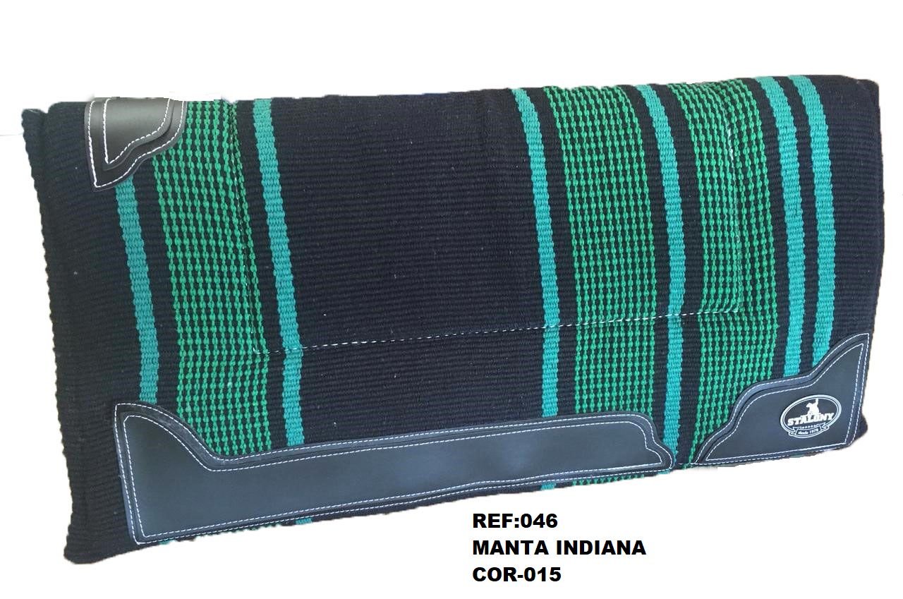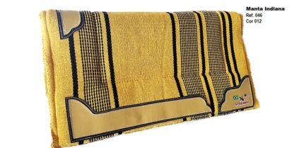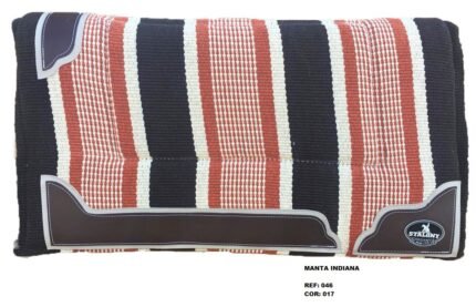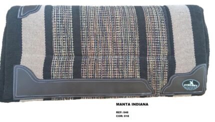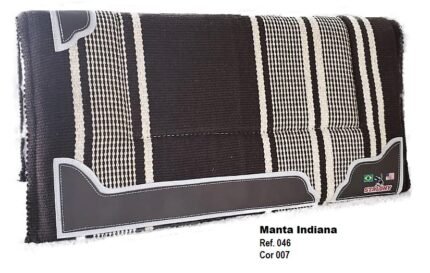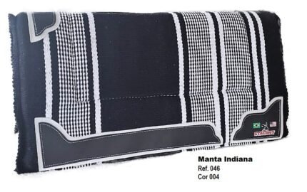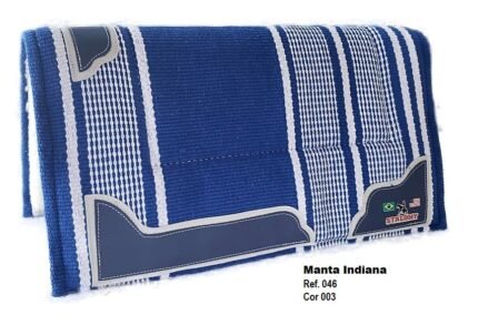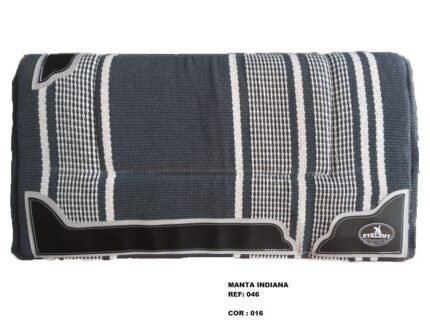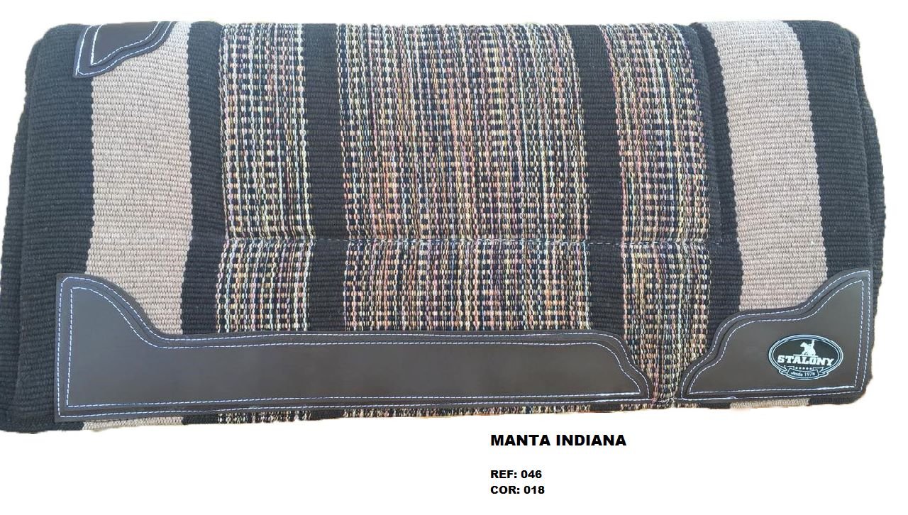 Manta Indiana Stalony em 100% algodão, com estampa étnica e acabamento artesanal. Leve, flexível e de secagem rápida, é ideal para montarias, podendo ser usada sozinha ou com baixeiro. Une estilo, tradição e praticidade para cavalo e cavaleiro.